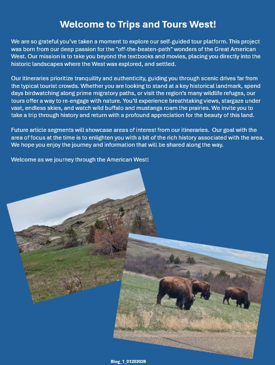 Trips and Tours West was founded on a simple belief: the American West deserves to be experienced with depth, authenticity, and reverence. We specialize in self-guided driving tours that reveal the historic and remote corners of the West—places where rugged beauty meets the stories of settlement, exploration, and endurance. Our self-guided tours are designed for travelers, naturists and history enthusiasts who seek more than scenery—they seek connection to the land and its legacy. Each route is crafted by regional experts who know these roads, these markers, and these stories intimately, ensuring you see the most meaningful sites on your journey through the West.